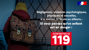 « Négligences, violences psychologiques, physiques ou sexuelles, à la maison, à l’école ou ailleurs, si vous pensez qu’un enfant est en danger : contactez le 119 » Alors…